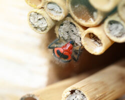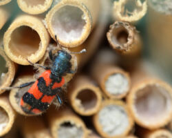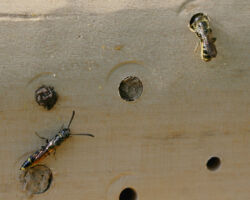 Wildbienen sind übrigens nicht angrifflustig und stechen höchstens, wenn sie akut bedroht werden. Man kann also unbesorgt aus nächster Nähe dem Treiben an den Nisthilfen zuschauen. Viel Vergnügen!