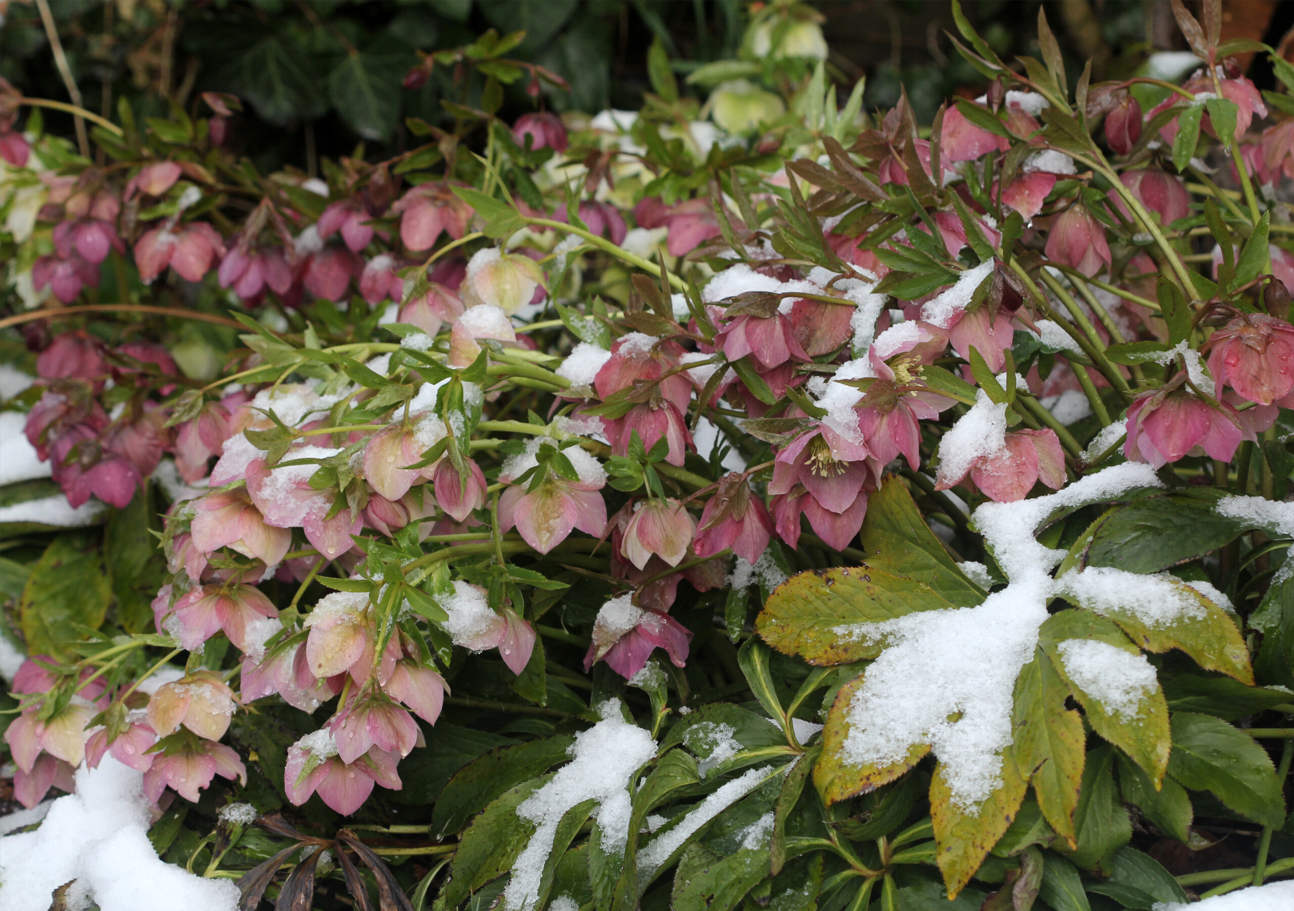 Schneefall während der Blüte ist für die Stinkende Nieswurz kein Problem.