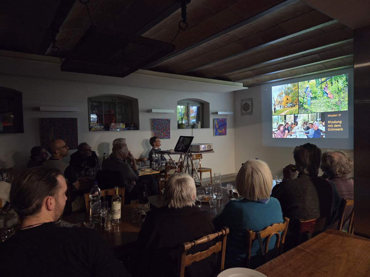 Ein weiteres Highlight des Abends war die von Christine zusammengestellte Diashow über die Entwicklung unseres Pachtgebiets Burghölzliwaldrand. Eine spannende Zusammenstellung vom Ursprung 2007 bis zum letzten Einsatz im November 2025.