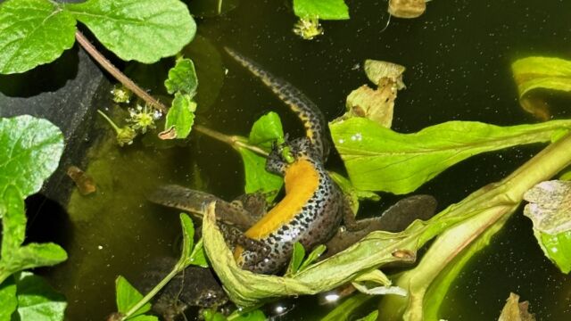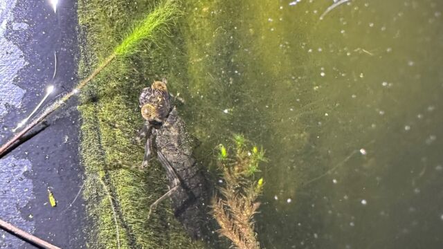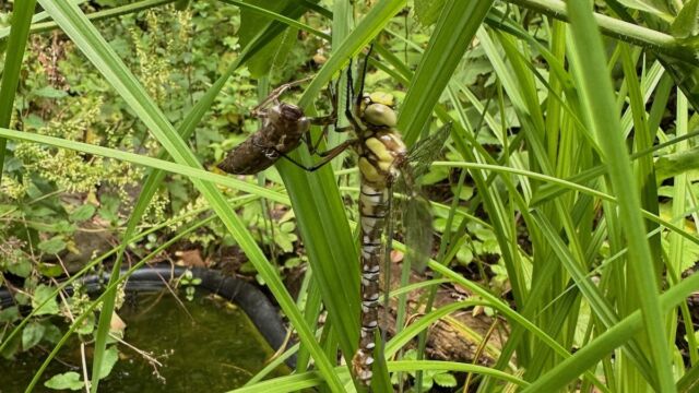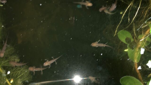 Unter der Wasseroberfläche geht es mindestens genauso geschäftig zu. Unzählige Wasserbewohner sind dort unterwegs und füllen den Teich mit Leben. Frösche, Molche und Kröten schwimmen umher oder liegen dicht unter der Oberfläche auf der Lauer nach einem kleinen vorbeifliegenden Happen. Während es schon spannend – und auch angenehm beruhigend – ist, den ausgewachsenen Tieren zuzusehen, so ist es jedes Jahr aufs Neue einfach faszinierend zu beobachten, wie den kleinen, schlicht geformten Kaulquappen mit zunehmender Grösse schliesslich Beinchen wachsen und sie nach und nach ihre «fertige» Form annehmen. Sie teilen sich ihren Lebensraum mit verschiedensten Insekten und Insektenlarven. Während Wasserkäfer, wie der Name schon sagt, im Wasser ihr Element haben, verbringen die Larven verschiedener Fluginsekten, wie z.B. Köcherfliegen und Libellen ihre gesamte Larvenzeit unter Wasser.