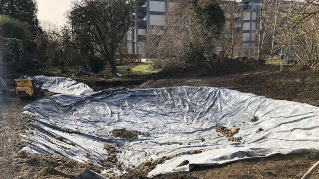 Anleitung zum Bau eines Folienteichs. Es lohnt sich Naturgarten-Fachpersonen mit Erfahrung im Teichbau hinzuzuziehen.