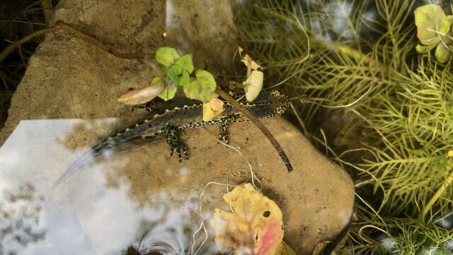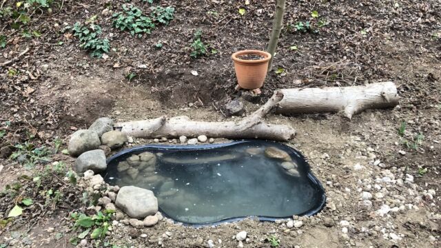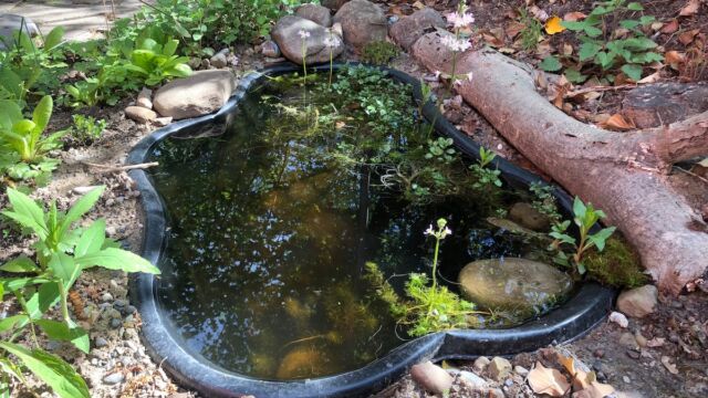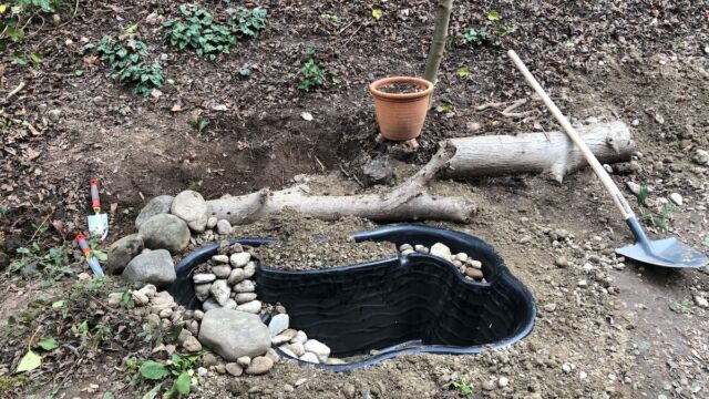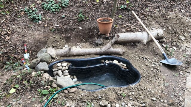 - Mit grösseren Steinen Unterwasserverstecke bauen und Teich bepflanzen.