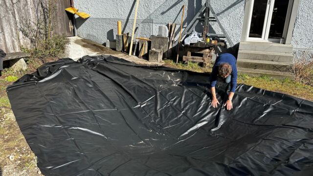 - Darauf achten, dass die Teichfolie genügend gross ist. Je tiefer der Teich desto mehr Folie ist nötig.
