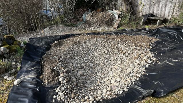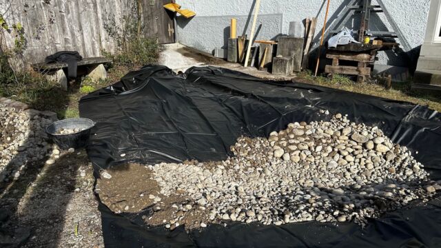 - Teichfolie mit Wandkies bedecken